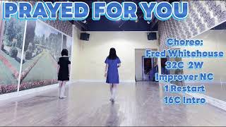 Prayed for You er en velafbalanceret og flydende 32/2 easy intermediate-dans med tydelig moderne countryforankring. Koreografien er kompakt og musiknær med bløde overgange, kontrollerede drejninger og markante accenter, der følger sangens frasering. Tempoet er moderat, og dansen kræver sikker timing samt en bevidst brug af dynamik for at understøtte musikkens opbygning.