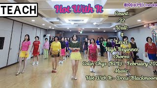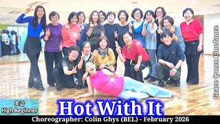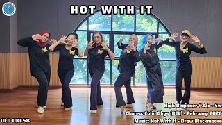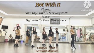 Hot With It er en energisk high beginner-dans med 32 counts over fire vægge. Den har et markant og rytmisk udtryk, hvor bevægelserne ligger tydeligt i beatet. Stemningen er frisk og selvsikker.
