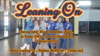 Leaning On er en velafbalanceret intermediate-dans med 48 counts over to vægge. Udtrykket er roligt og eftertænksomt med fokus på musikalitet og sammenhæng. Strukturen giver plads til variation, men holder et stabilt og kontrolleret flow.