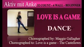 Love Is a Game er en begynderkoreografi med 32 counts over fire vægge og et blødt, melodisk udtryk. Strukturen er klar og let at følge, hvilket gør dansen velegnet til både undervisning og sociale gulve.