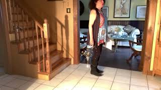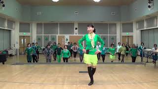 If you use the suggested song, Dance Above The Rainbow, the dance will end facing the back wall. To end on a dramatic note and for fun, on the last triple left, turn ½ left, then raise your left arm up with elbow bent, keeping your right arm across your waist, palm facing up, as you stomp down left on count 32, while facing the front wall