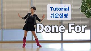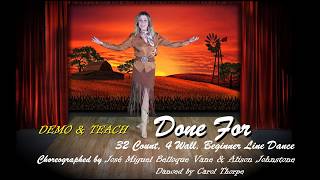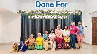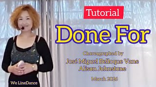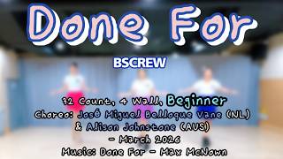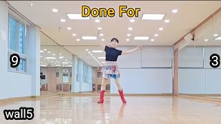 Done For er en klassisk begynderkoreografi med 32 counts over fire vægge og et roligt, melodisk udtryk. Strukturen er enkel og overskuelig, så dansen hurtigt kan læres og fungere på sociale gulve.
