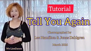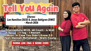 Tell You Again er en flydende og følelsesladet 48/4 intermediate NC2S-dans, hvor nightclub/two-step-stilen giver plads til ro, kontrol og musikalitet. Koreografien arbejder med lange linjer og bløde vægtskift, der understøtter sangens romantiske karakter.