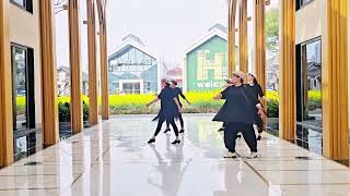 5-6&Step right to right side turning ¼ turn left slightly lifting left foot off the ground, Turn a further ½ turn left stepping left slightly forward, ½ turn left stepping right back 3.00