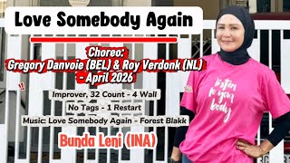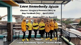 Love Somebody Again er en blød og musikalsk 32/4 improver-dans med et moderne pop/country-udtryk. Koreografien er kompakt og elegant opbygget med et jævnt flow, der følger musikkens følelsesmæssige udvikling.