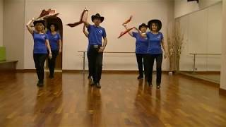 CROSS RECOVER1&Cross right over left, lift the left foot and replace it2Step the right foot back in place3&Cross left over right, lift the right foot and replace it4Step the left foot back in placeCHASSE TO THE RIGHT/STOMP5&Step the right foot to the right side, close left foot next to right6&Step the right foot to the right side, close left foot next to right7Step the right foot to the right side&8Stomp left, stomp rightFORWARD ROCK/BACK ROCK9&Rock forward on left foot, lift right foot & replace it10&Rock back on left foot, lift right foot & replace it11Close left foot next to right&12Swivel both heels to the right and back to the center¼ TURN LEFT/ CAMEL WALK (WITH LASSO MOTION)&Turn a ¼ to the left (weight on ball of right foot)13Step forward on left foot (two lasso swings over head with right hand)&Slide right to left14Step forward on left15Slight pause then bring right foot to place&16Place hand behind your head and bump hips forward twiceREPEAT