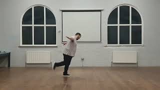 Bevægelserne er flydende og kontrollerede med fokus på musikalitet og timing. Udtrykket er intenst og lidt dramatisk.