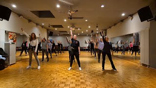 Note: The song starts at a slower tempo than the middle section. The ending is even slower than the beginning. The choreography is always danced to match the respective tempo. Depending on the musical phrasing, the triple steps may also be adapted to the percussion,