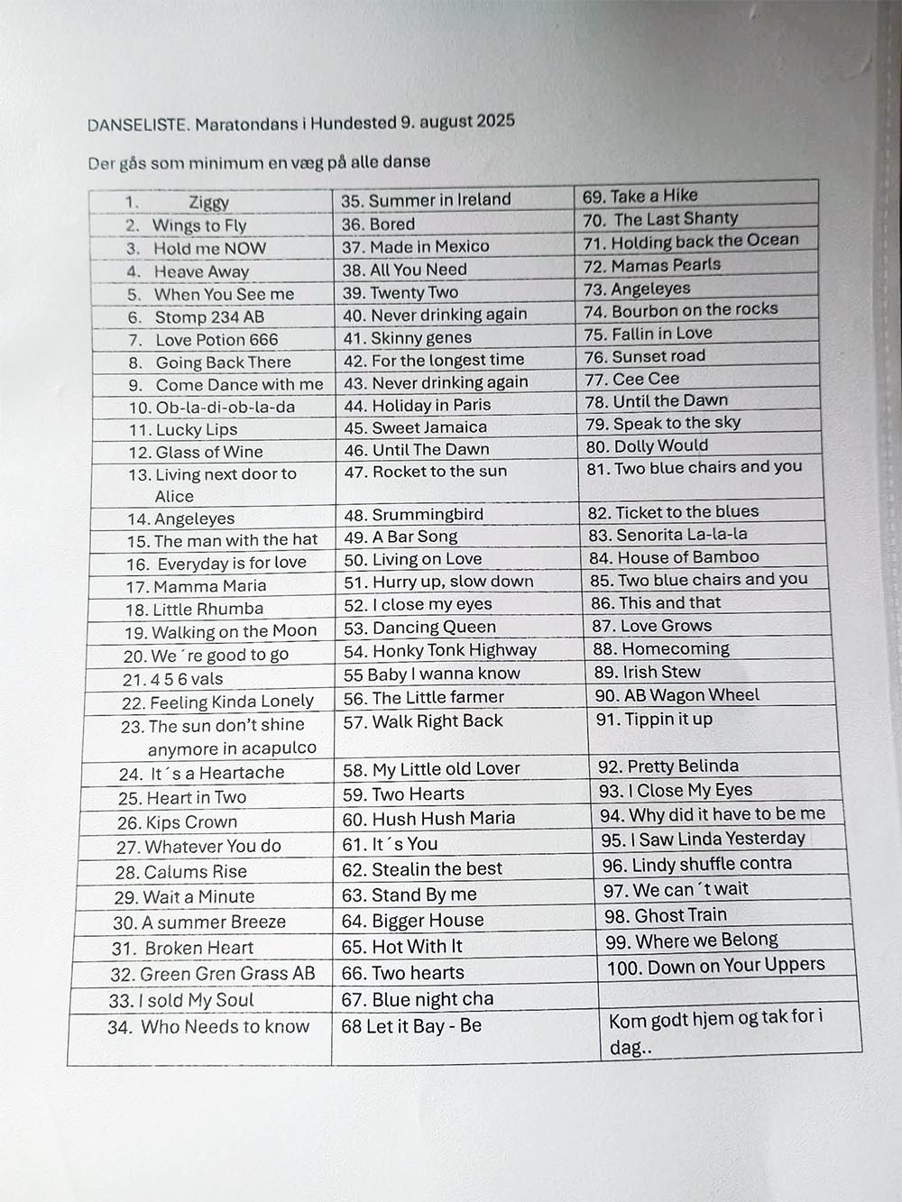 | Dagen lang danses der efter danseliste, som kommer en uges tid før. | |