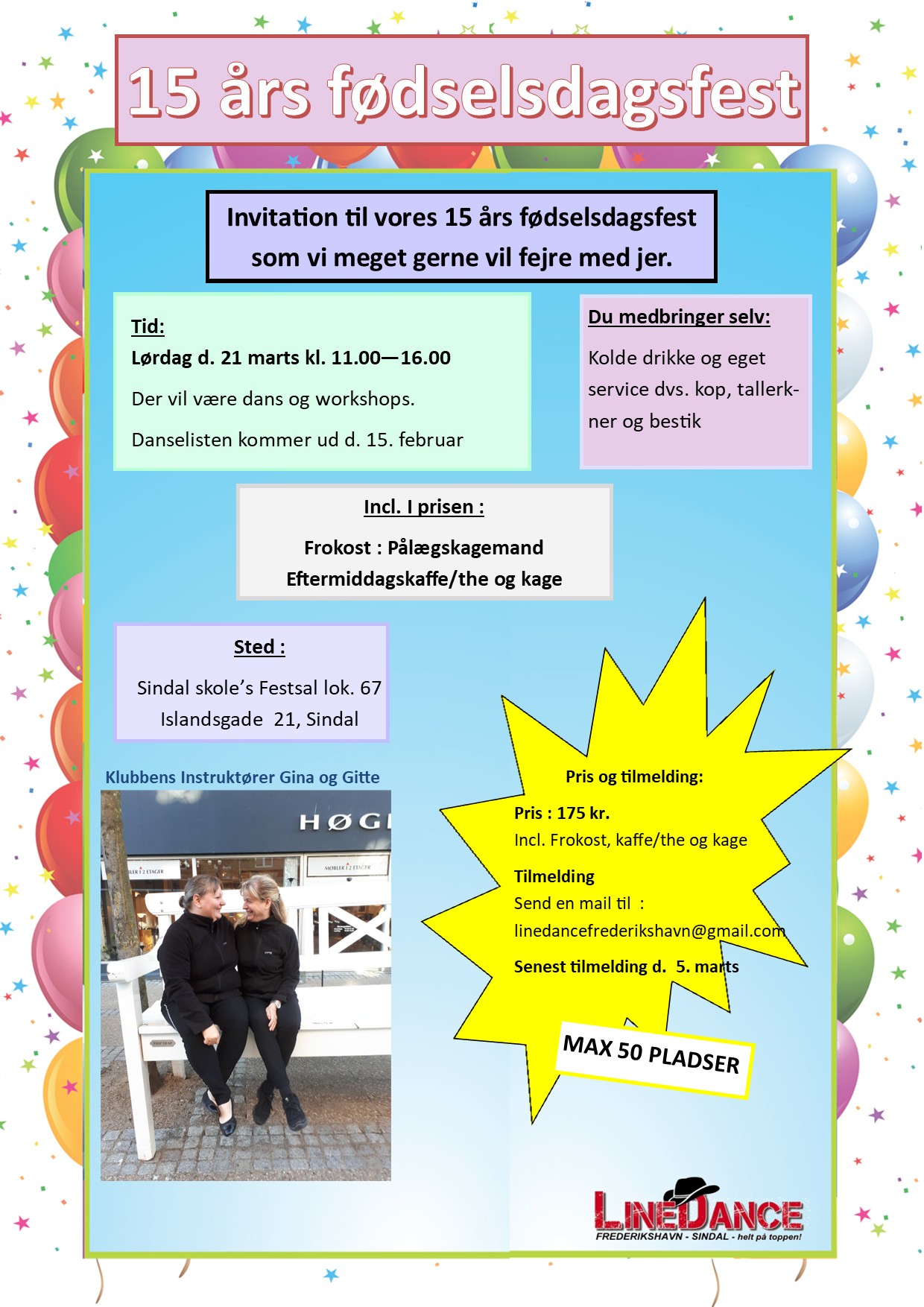 Invitation til vores 15 års fødselsdagsfest som vi meget gerne vil fejre med jer 💃🕺 Danselisten kommer ud d. 15....Læs mere Flyer