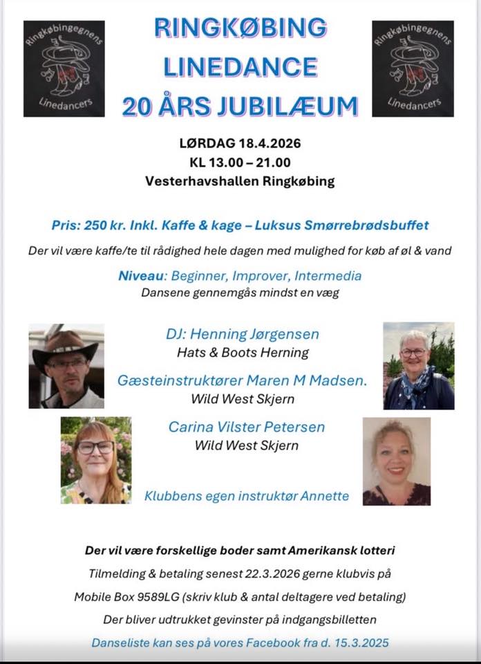 DJ: Henning Jørgensen - Hats & Boots Herning Gæsteinstruktører: Maren M Madsen – Wild West Skjern Læs mere