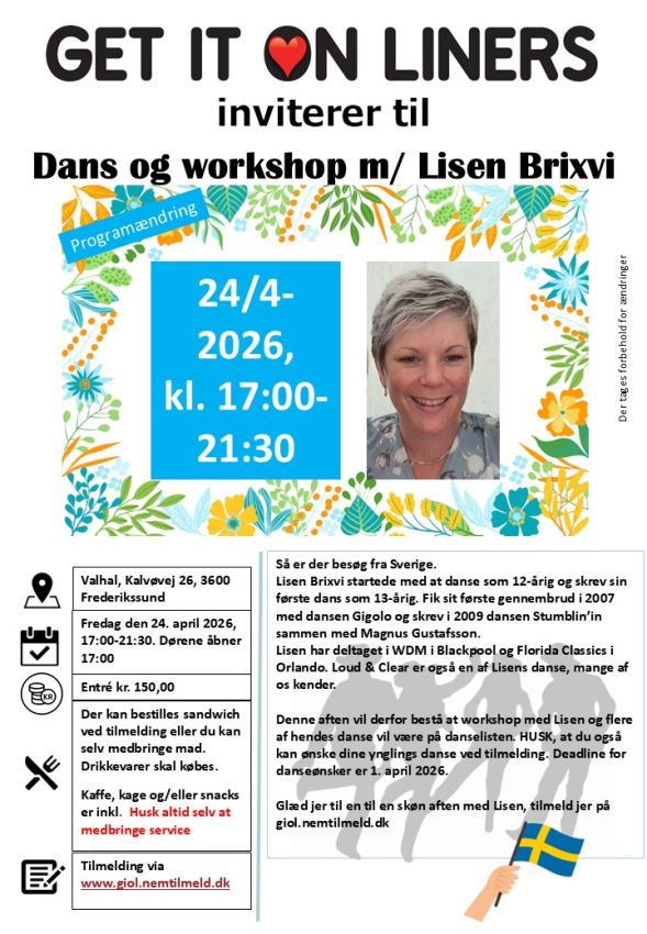 🚪 Dørene åbner kl. 17:00 Besøg fra Sverige Lisen Brixvi startede med at danse som 12-årig og skrev sin første dan... Læs mere