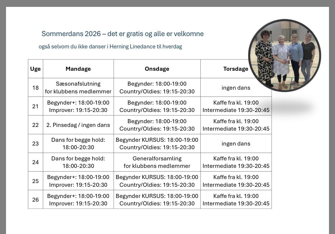 Begynder: 18.00 – 19.00 Country/Oldies: 19.15 – 20.30 Kommer du forbi Herning i løbet af maj-juni, så er du velkom... Læs mere