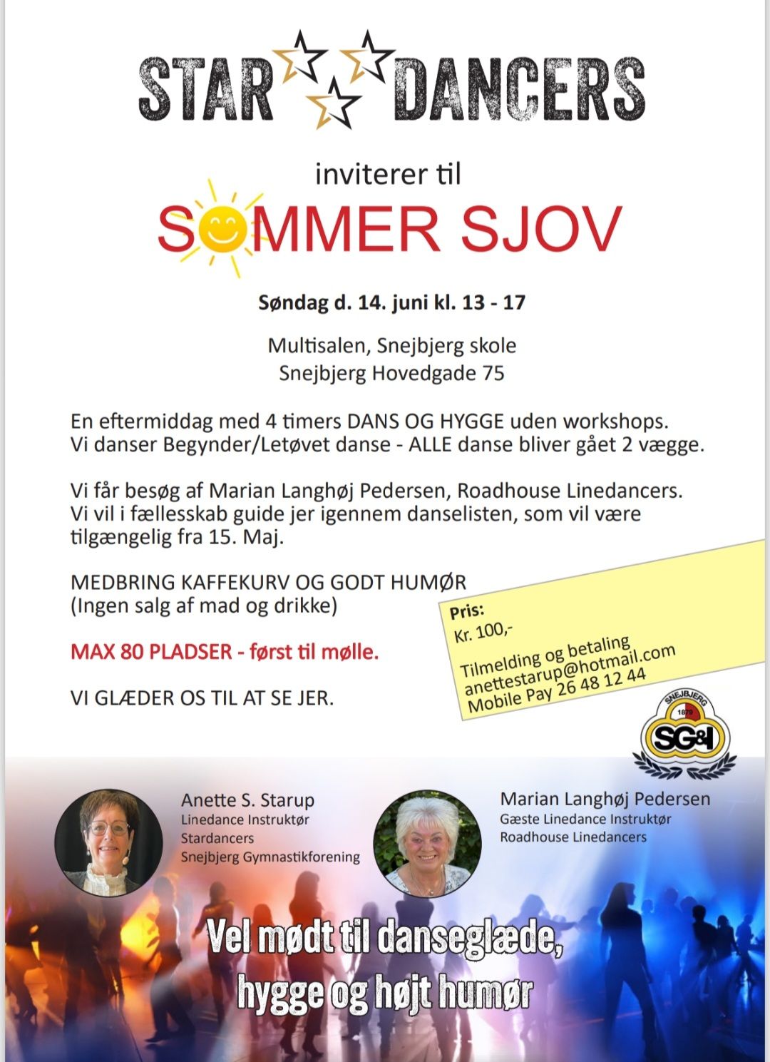 Star Dancers er en Linedance klub, hvor vi elsker at danse og være sammen i et ret unikt fællesskab, hvor det sociale har stor værdi. Hos os skal der være respekt for og accept af hinandens forskelligheder med plads til ALLE Vi skal have sved på panden og gå glad hjem fra dans Vi tilbyder masser af hygge, dans og arrangementer på tværs af holdene Der undervises på 4 Hold på forskellige niveauer og vi har selvfølgelig også plads til DIG