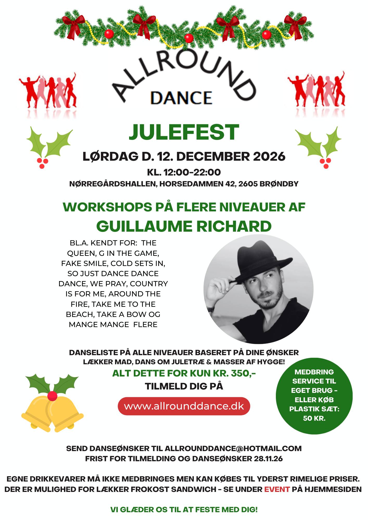 Lækker mad, dans om juletræ 🎄 og masser af hygge 🤗 💃 Workshops på flere niveauer med Guillaume Richard 🕺 Læs mere
