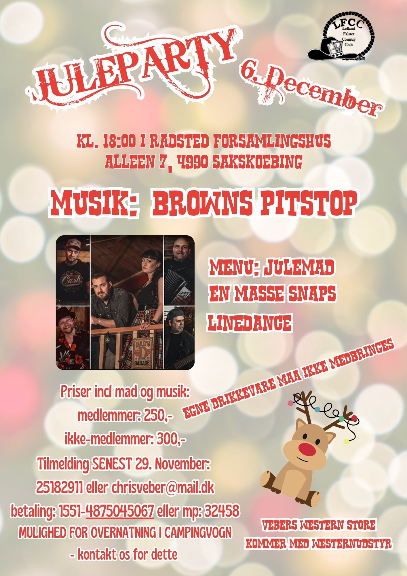 Lolland Falster Country Club (LFCC) 🎶 Musik: Browns Pitstop 🍽️ Menu: Julemad. En masse snaps. Linedance 💰 Pr... Læs mere