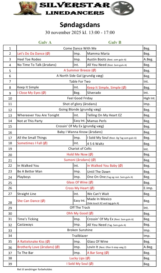 Sidste nye danse udlært hos Silverstar Linedancers: |