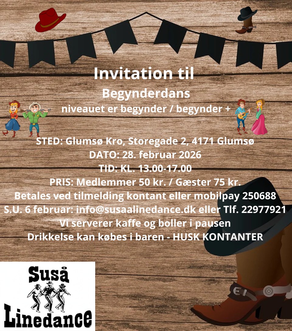 📝 Tilmelding: S.U. senest 6. februar til ✉️ info@susaalinedance.dk 📞 Tlf. 22 97 79 21