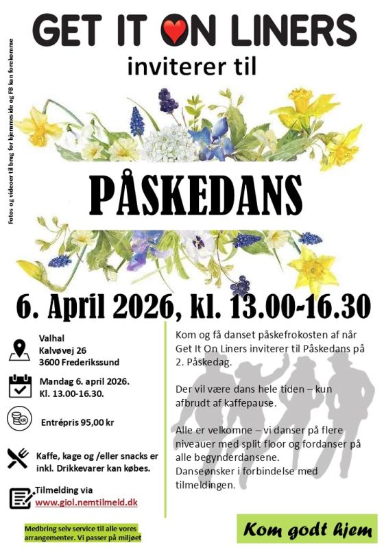 đ Kom og fĂ„ danset pĂ„skefrokosten af, nĂ„r Get It On Liners inviterer til PĂ„skedans pĂ„ 2. pĂ„skedag! Der vil vĂŠre dans hele tiden â kun afbrudt af kaffepause. Alle er velkomne â vi danser pĂ„ flere niveauer med split floor og fordanser pĂ„ alle begynderdansene.